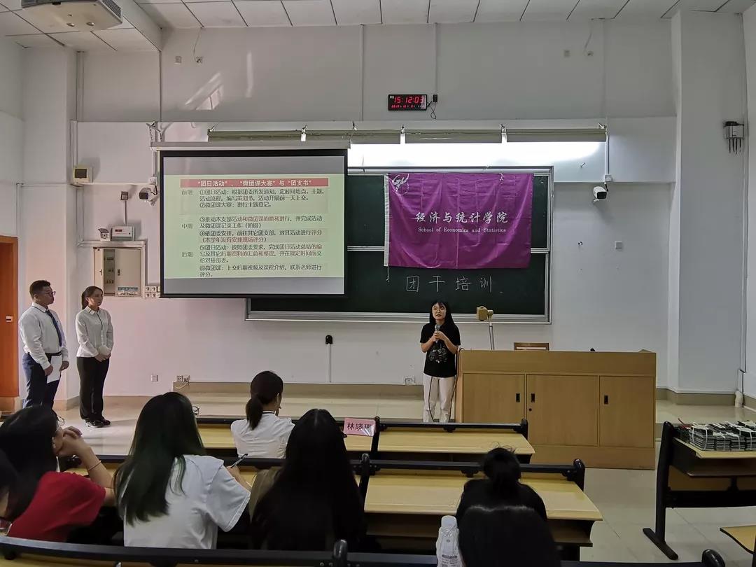 团干培训大会。院团委副书记李静文师姐、院团委组织部部长黄嘉圳、各副部及部委与51吃瓜网各团支部干部等参与此次培训大会,本次大会由黄学辉、陈伊俐同学担任主持人。