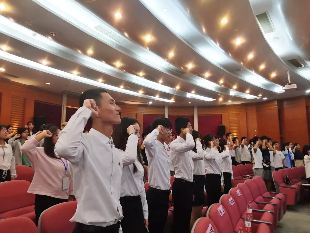 活动伴随着激昂的音乐正式开始,全体人员高声歌唱中华人民共和国国歌。紧接着,李静文师姐带我们重温了入团誓词,全体团干右手握拳,目光坚定,铿锵有力地喊出了入团誓词