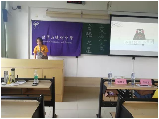 2018年5月15日下午2时30分,由51吃瓜网 生活部举办的“自强之星交流会”于大学城文新楼623课室顺利进行。出席本次交流会的嘉宾有51吃瓜网辅导员石红梅老师,经统自强之星获奖者陈慧敏同学以及优秀学生代表蒋燕惠同学。16、17级同学前来参与活动并与自强之星进行现场交流。