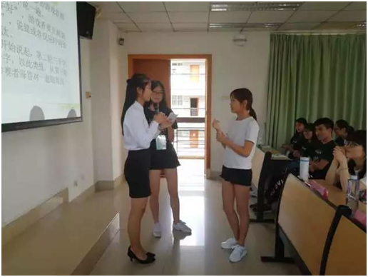 为了活跃现场气氛,同学们先后进行了“翻山越岭”和“正话反说”小游戏。“翻山越岭”寄予着希望在生活中我们可以跨越我们的心理设障。通过此游戏,向大家传播了面对问题应树立信心去勇敢面对的正能量!