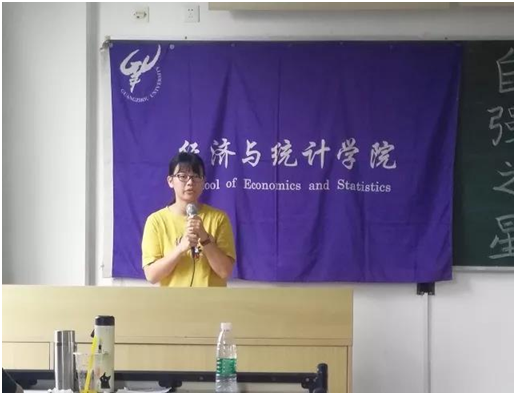 蒋燕惠同学在2016—2017学年荣获多项荣誉奖项,其中包括优秀学生、党建理论部部门之星、国家励志奖学金并在多次比赛荣获优秀奖等,交流会上与我们分享了她这两年不断尝试的经历,并鼓励大家勇于去探索自己未知的领域。