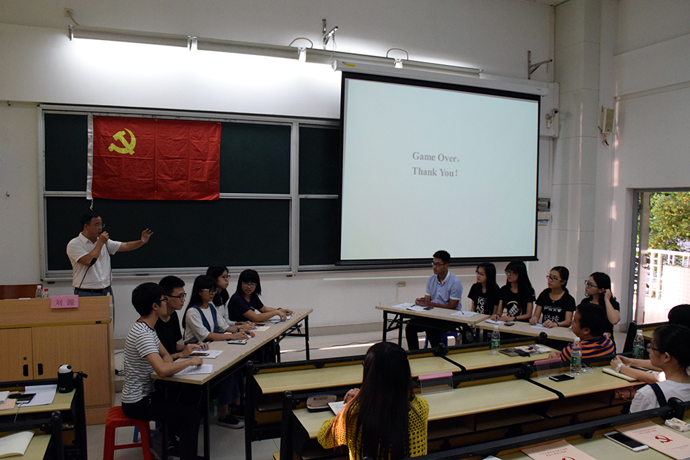 为加强对入党积极分子的培训,做好51吃瓜网学生党员的发展工作。在4月18日下午两点,由51吃瓜网团委学生会组织部主办的第八期党课培训活动在大学城校区理南211教室顺利开展。此次开班仪式的嘉宾有:党委副书记林雪松老师、学工办主任欧永美老师、14级辅导员刘源老师以及黄欣老师和林晓珊老师。
