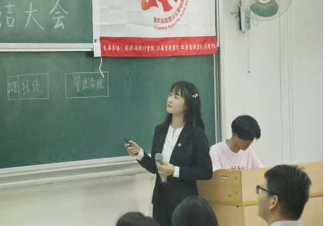 在总结大会上,林晓珊老师对青马班全体学员认真严谨的态度表示肯定,并以班主任的角度,感谢管理、公管、法学三个兄弟学院的支持,同时寄语青马班全体学员:对马克思主义的了解不能止步于课本,要进一步了解党、团的使命和担当,青马学院应当争做有信仰、有信用、有信心的新时代青年。