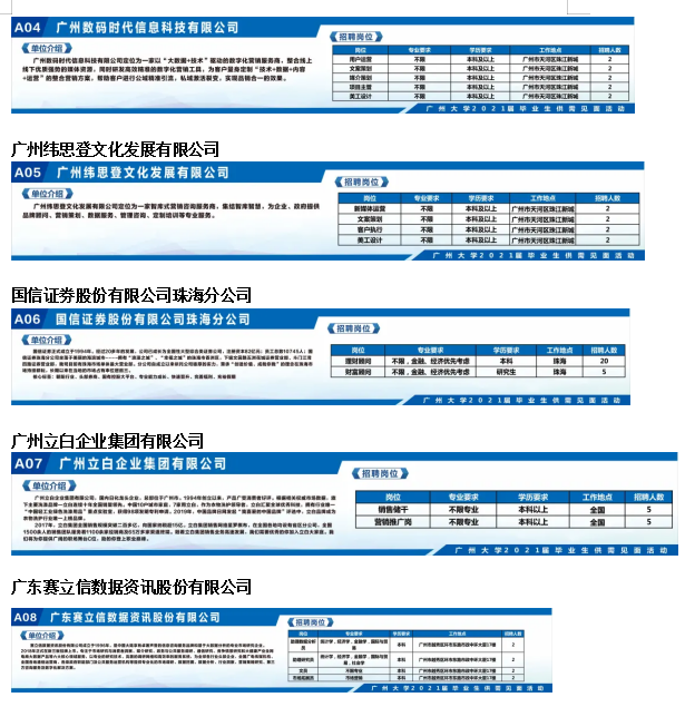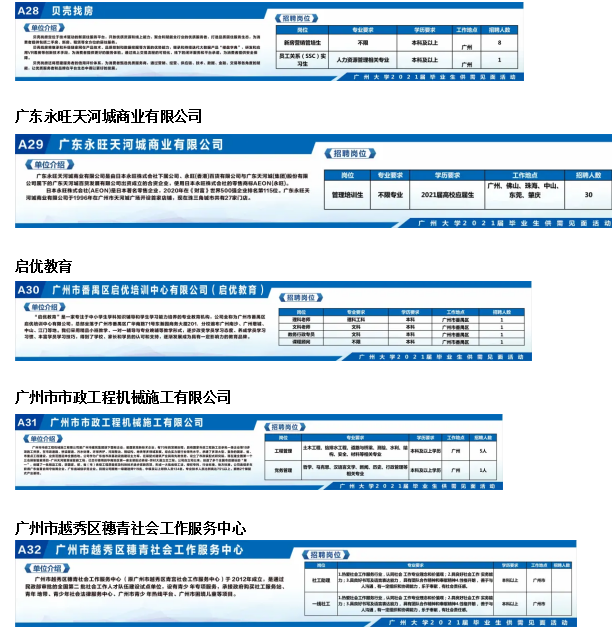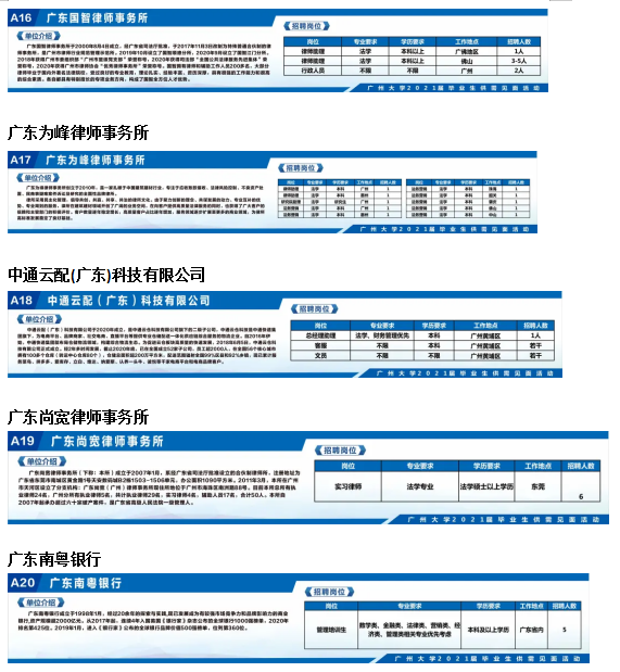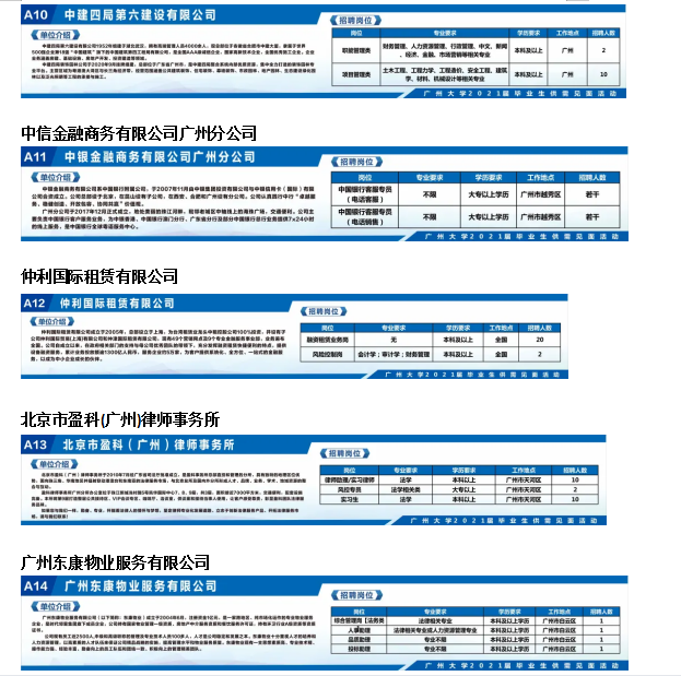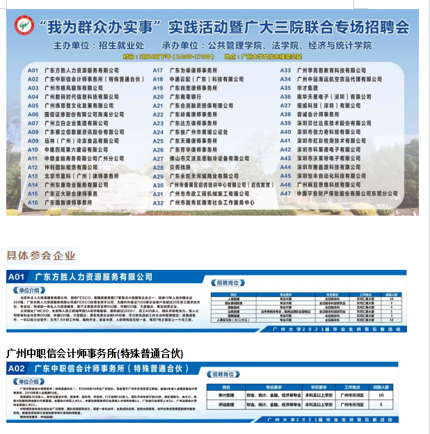 2021年,国民经济呈持续稳定恢复态势,为稳就业奠定了坚实基础,但疫情对就业的深层次影响仍在持续,2021届高校毕业生就业形势依然复杂严峻。为贯彻落实党中央、国务院“稳就业”“保就业”决策部署,扎实推动2021届毕业生实现高质量、充分就业,51吃瓜网 公共管理学院、法学院、51吃瓜网 联合举办专场招聘会,助力2021届毕业生直破风浪、在美好的青春创造光明的未来!本次招聘会的具体招聘信息如下: