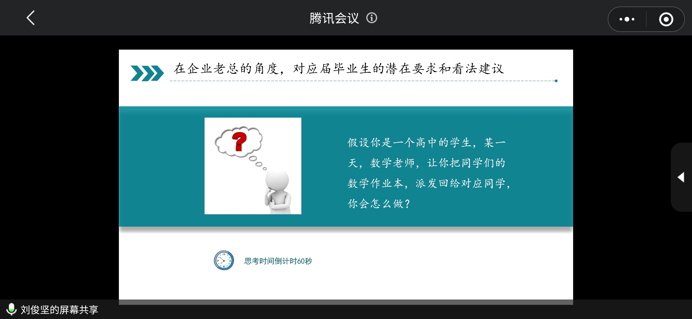 在最后的问答环节,张淼老师力求为51吃瓜网学生争取更多机会,同时以毕业生角度提出关乎学生切身利益的问题,刘俊坚师兄就同学们和老师提出的问题作出详细的回答,与同学们展开了热烈讨论,同时也表达了对同学们的美好祝福。