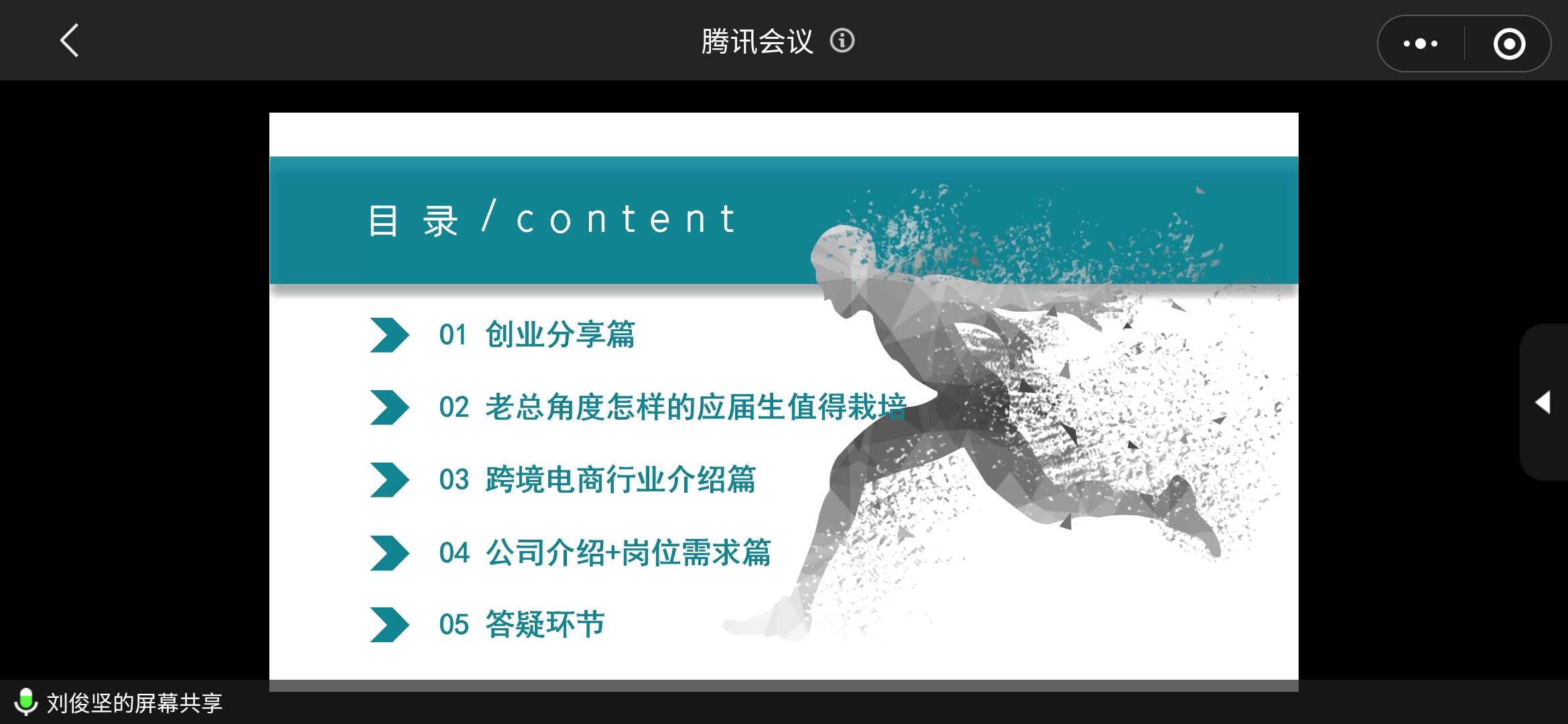 紧接着,刘俊坚师兄以创业经历分享、跨境电商行业介绍、公司招聘等方面展开,对同学们的创业、就业分享了个人经验。